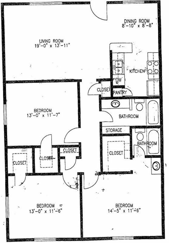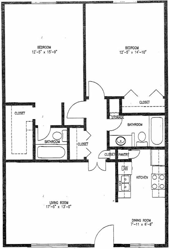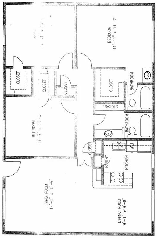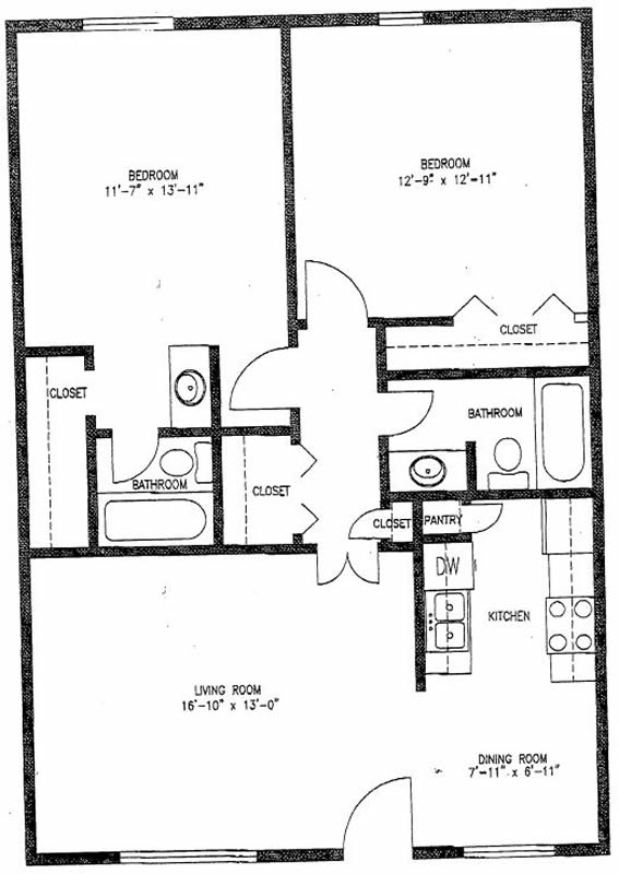 B1B - Two Bedroom / One Bath / 975 Sq. Ft.*